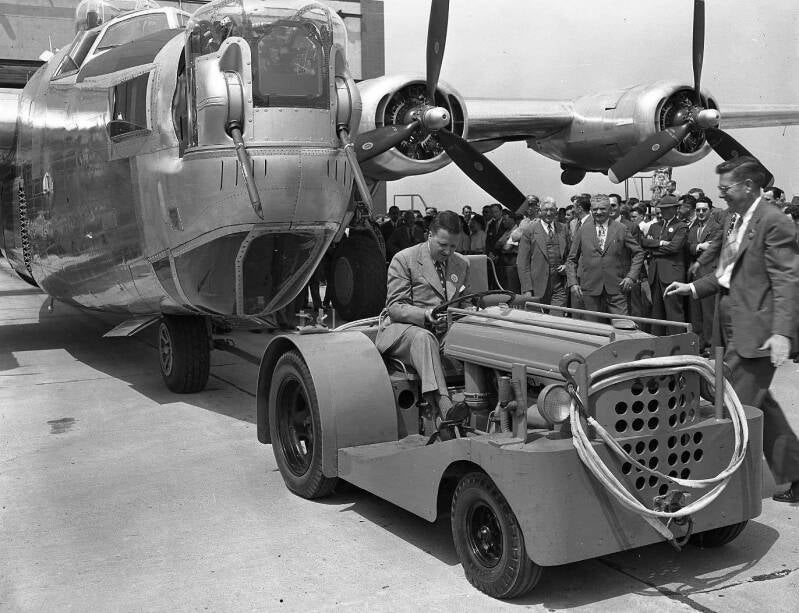 Here's a photo from the Henry Ford Museum of Henry Ford II on the Ford BNO40 aircraft tractor as the last B-24 Liberator comes off the assembly line at Willow Run. It was posted in the Warbird Information Exchange Facebook Group by Tom Walsh and we thought it fit in well with our other posts so far this week.