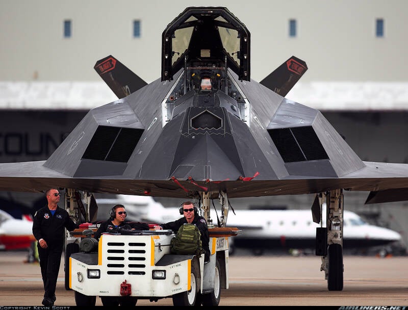 Pictured: A Ford F-350 Bobtail tows on November 8, 2014 a Lockheed F-16C Fighting Falcon number one of eight assigned to the United States Air Force's air demonstration team, the Thunderbirds. They are also part of the 57th Wing, which is based at Nellis Air Force Base in Las Vegas, Nevada. The eight Thunderbird F-16s are equipped with a smoke generator that replaces the regular 20mm cannons and are painted in the Thunderbirds' colors. Photo: Ali Coşyan.