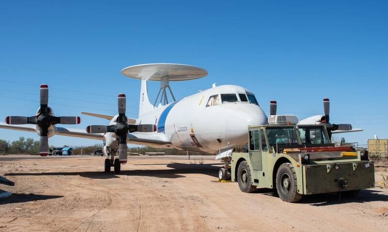 A Royal Canadian Air Force CP-140 Aurora maritime patrol aircraft being towed by a Schopf F396 tractor at CFB Greenwood Air Base, Canada. Photo comes from the Facebook page: The Aurora News.